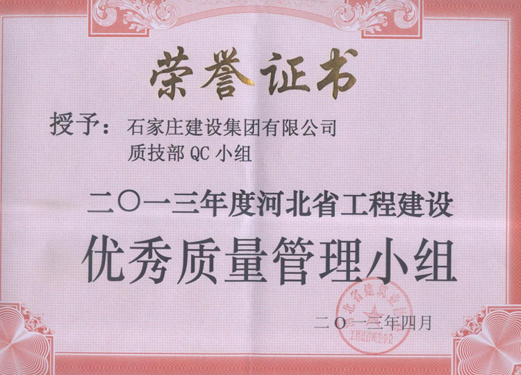 2013年度河北省工程建設(shè)優(yōu)秀質(zhì)量管理小組